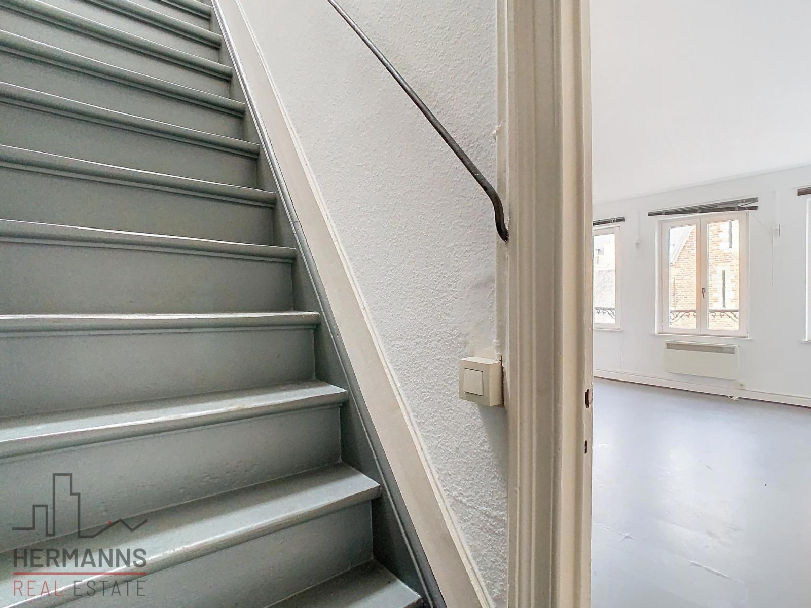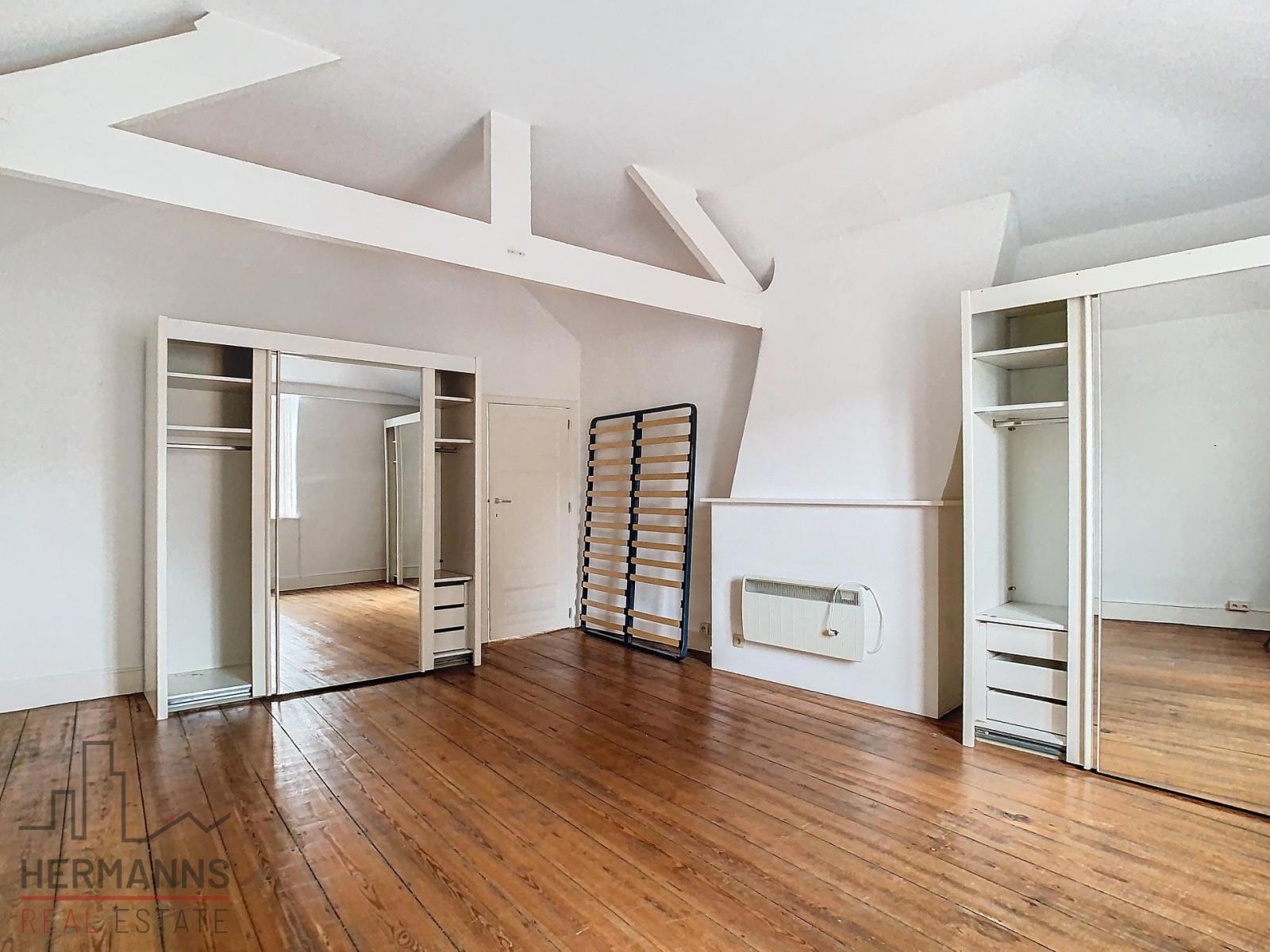 Situé à proximité immédiate de la Grand Place et de la Gare Centrale, ce spacieux duplex d’environ 100 m² offre de beaux volumes et une disposition fonctionnelle.