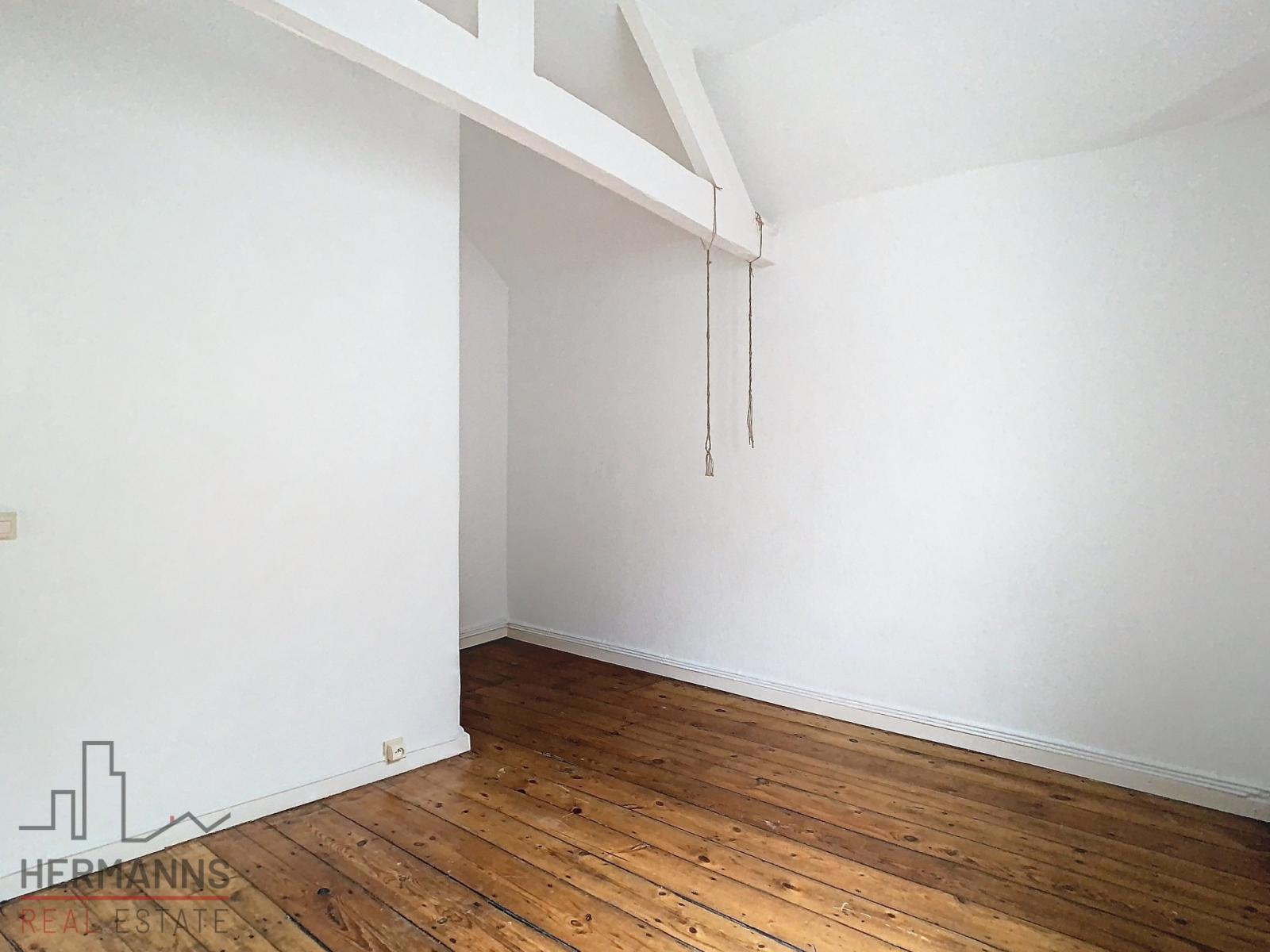 À l’étage, deux chambres dont une de +/- 25 m² et une de +/- 17 m².