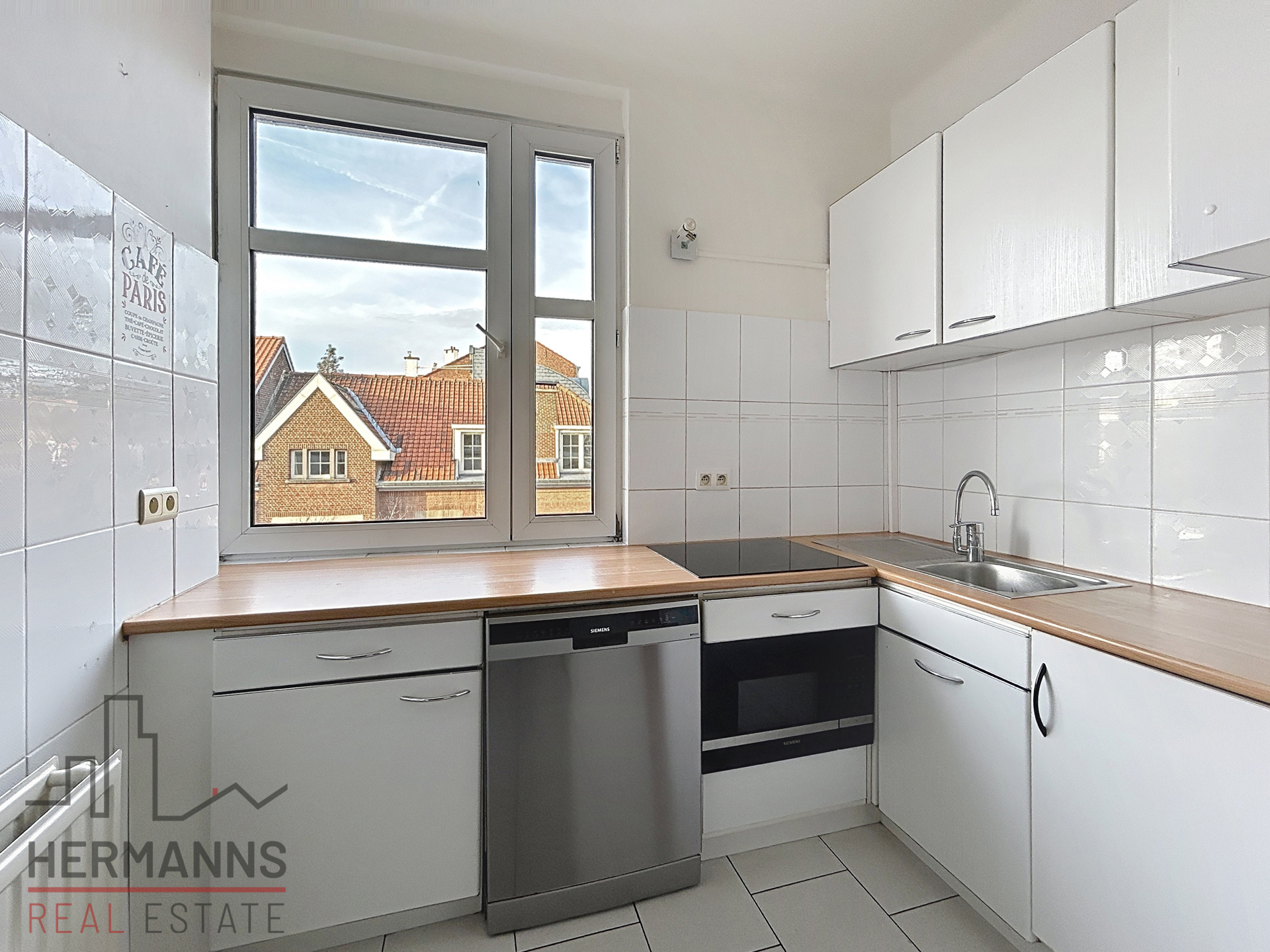 Pièce de vie lumineuse — Cuisine équipée (frigo, four à micro-ondes, lave-vaisselle, vitrocéramique) – Salle de bain fonctionnelle avec toilette – Cave – Local vélo