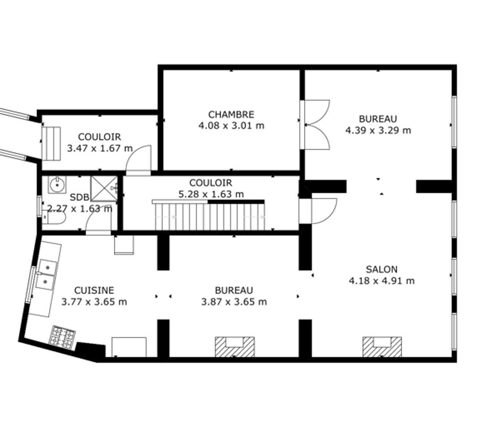 L’appartement se compose actuellement d’un spacieux salon, d’une salle à manger, d’une cuisine équipée, d’une grande chambre, d’un espace bureau et d’une salle de douches.