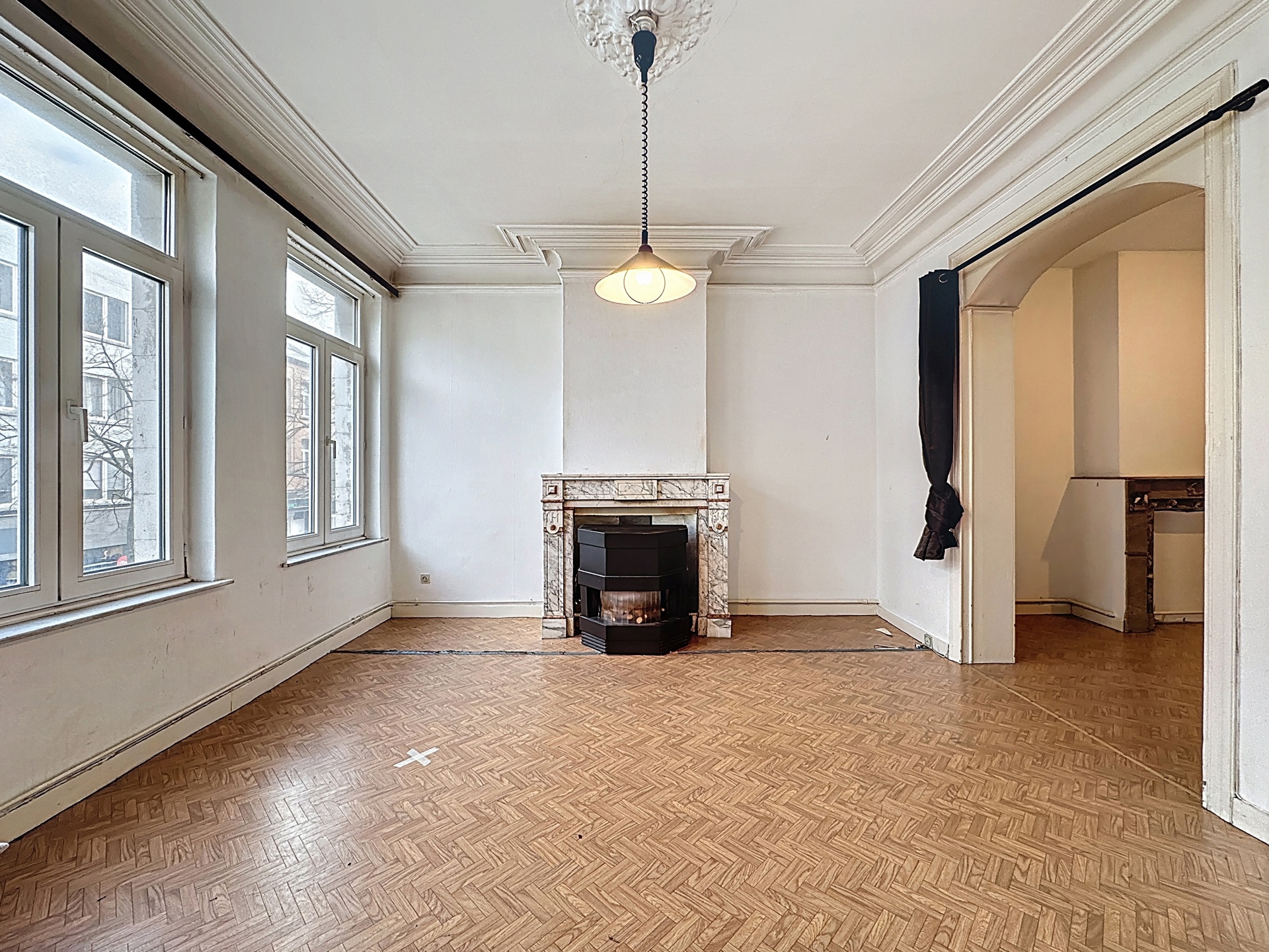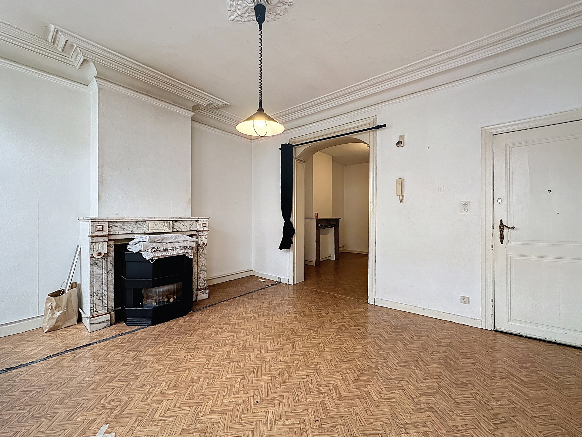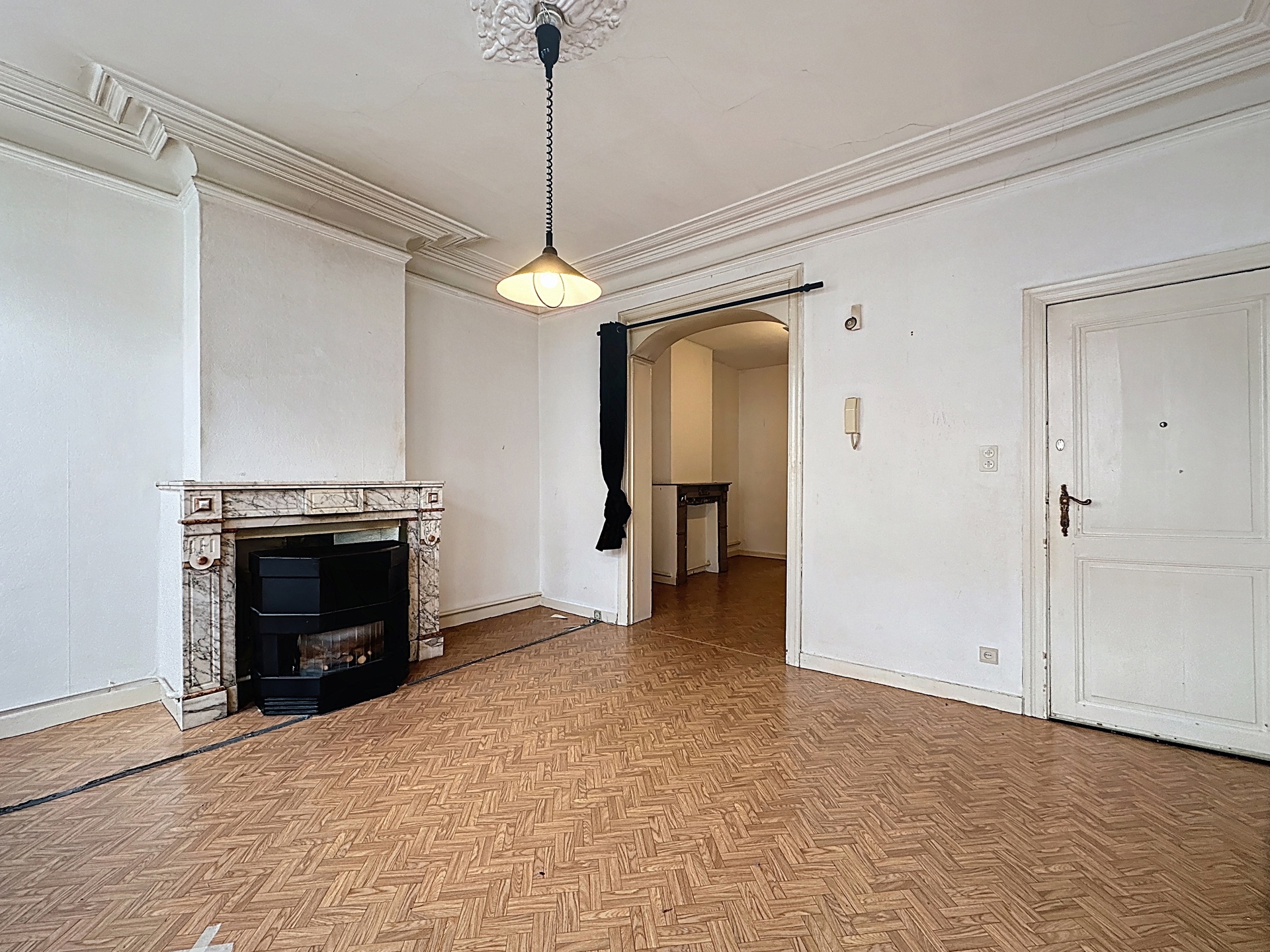 À deux pas de la Piscine l’Espadon, au sein d’un petit immeuble à faibles charges, très bel appartement de ±108 m² offrant de superbes volumes et un fort potentiel de valorisation.