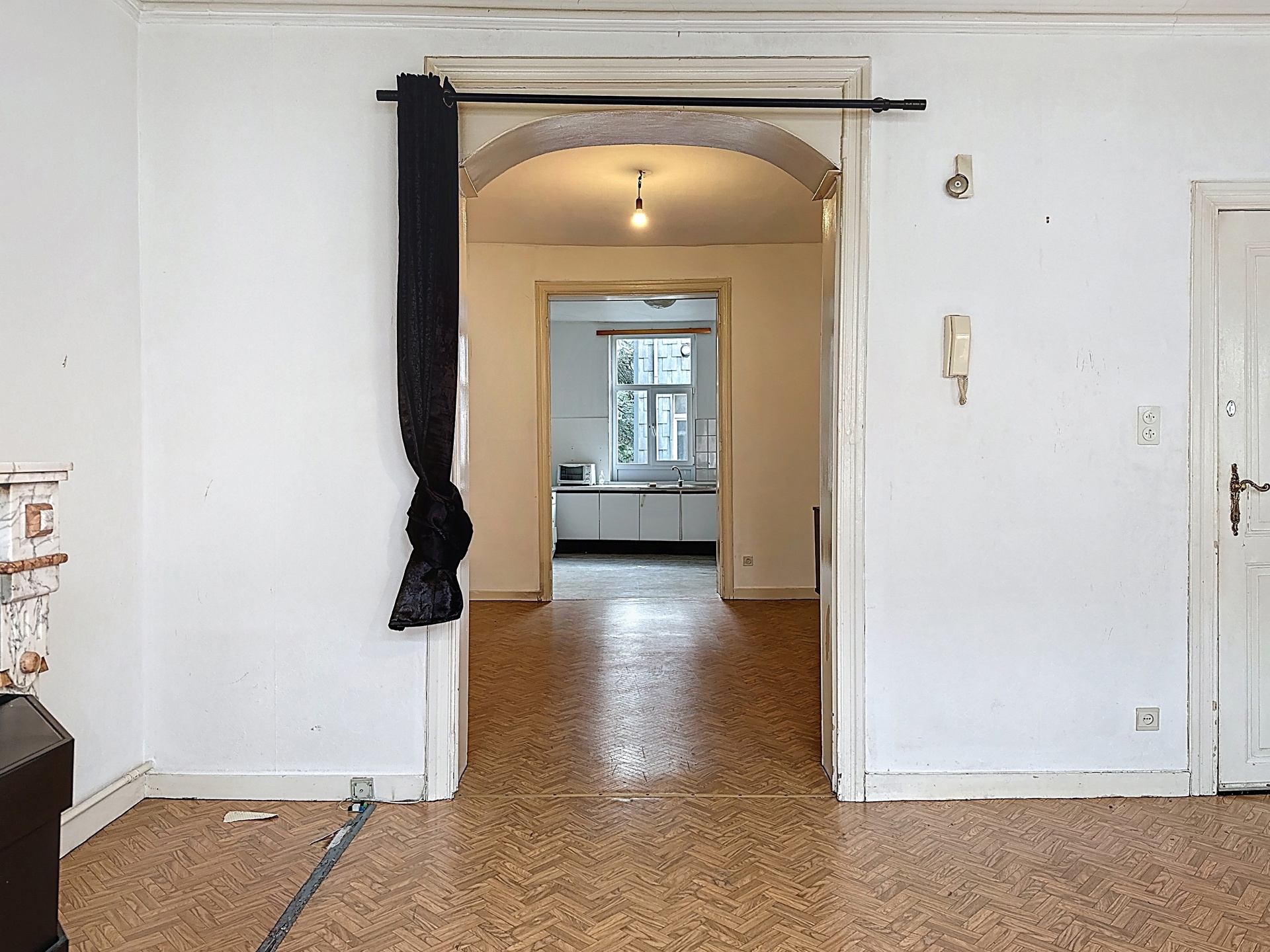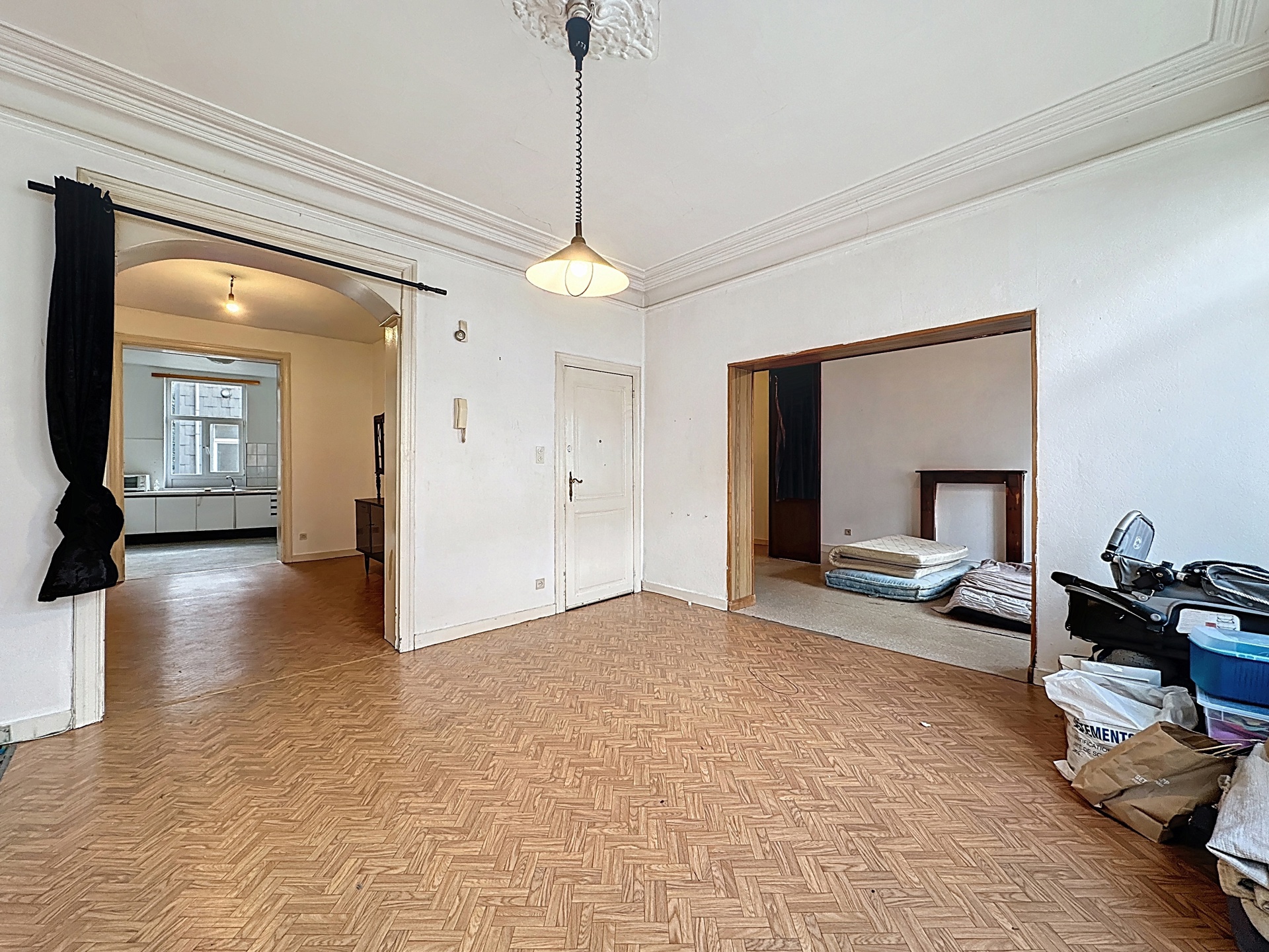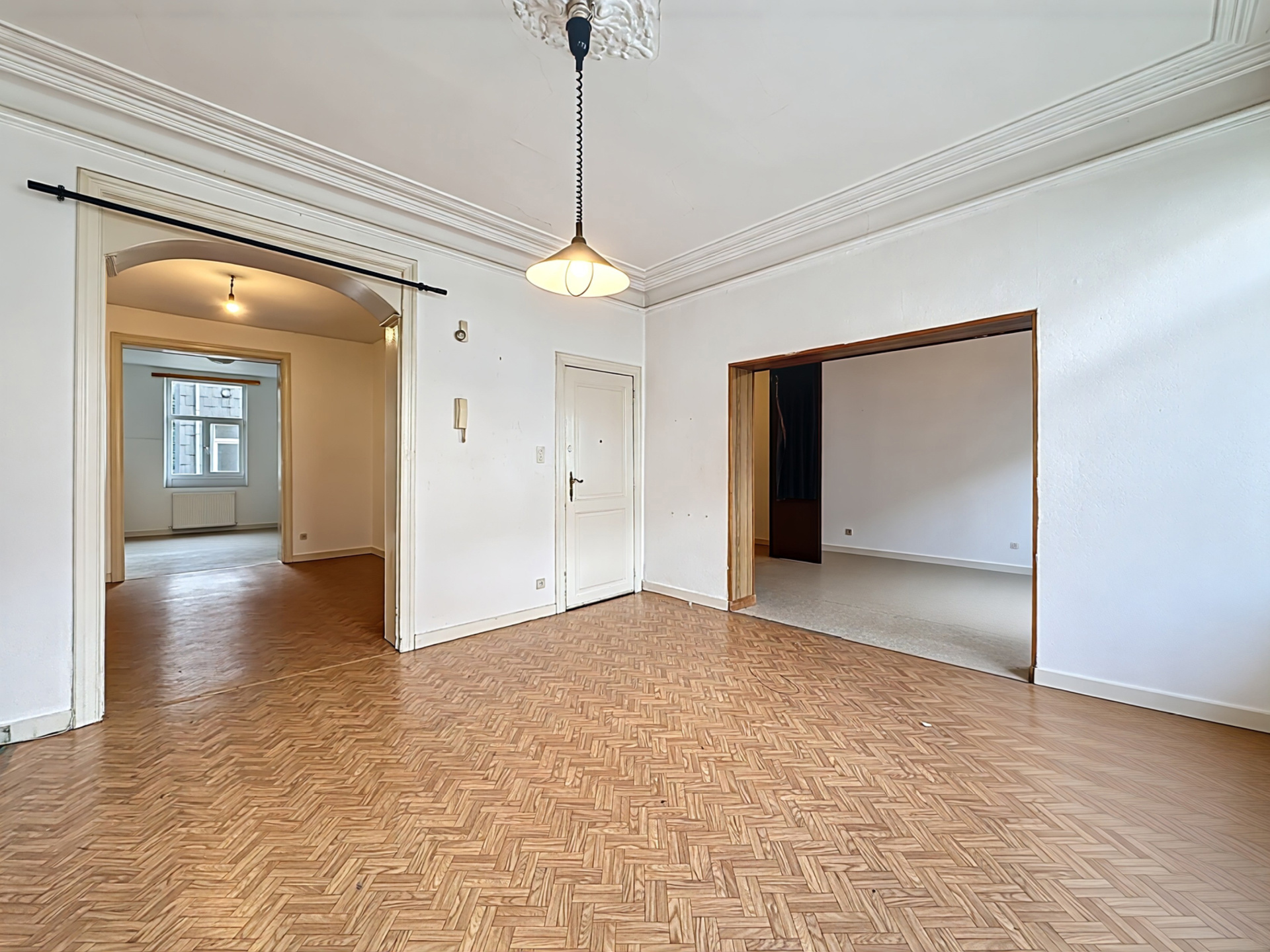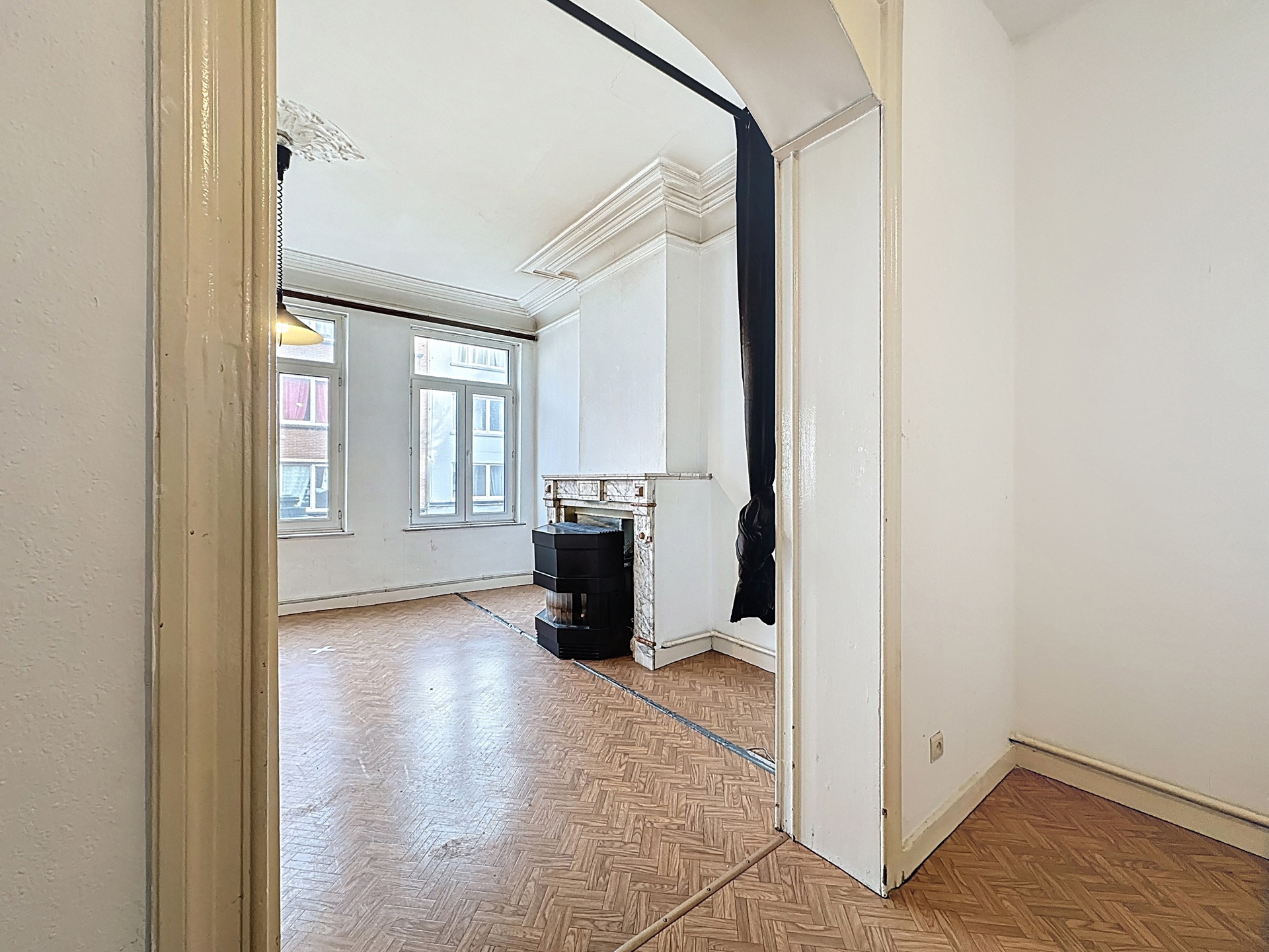 À deux pas de la Piscine l’Espadon, au sein d’un petit immeuble à faibles charges, très bel appartement de ±108 m² offrant de superbes volumes et un fort potentiel de valorisation.