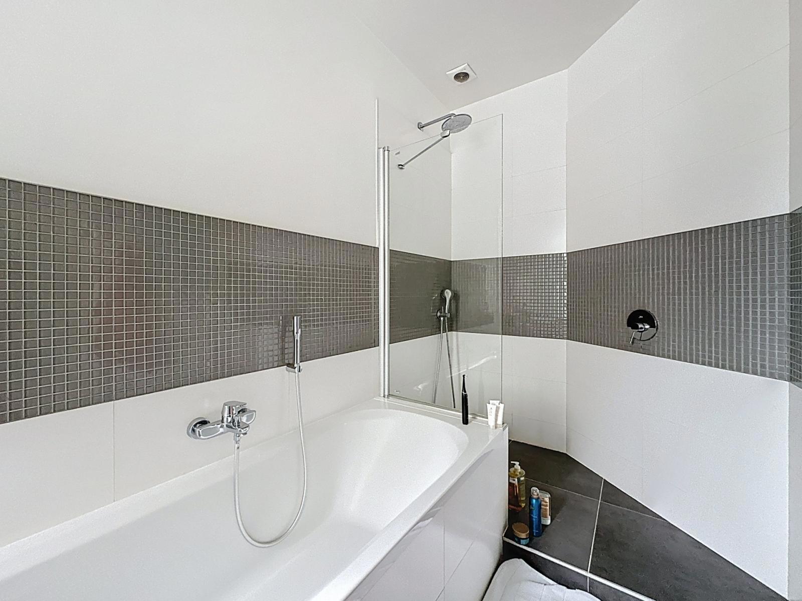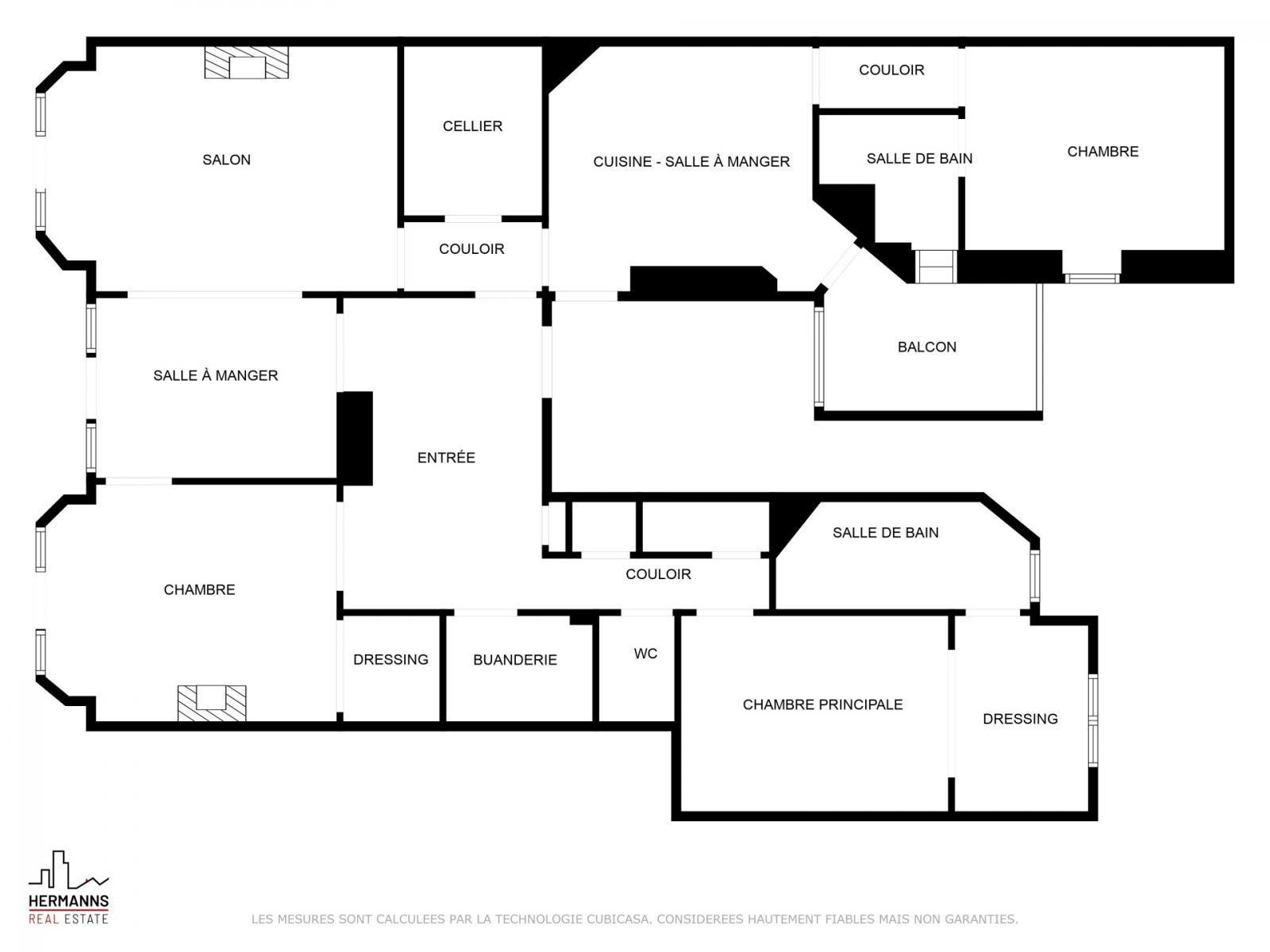 Cet appartement comprend un séjour lumineux avec parquet massif, une salle de réception en parquet massif, une cuisine équipée, une salle de bains, une salle de douche, un coin buanderie et trois spacieuses chambres.