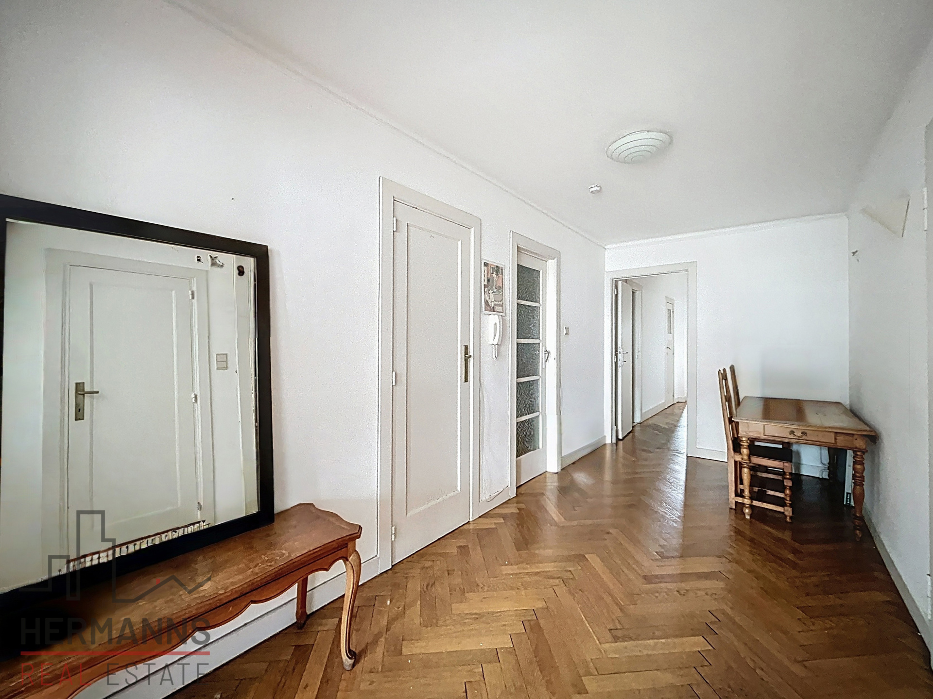 Il se compose d’un hall d’entrée avec placards de rangement, d’un séjour lumineux de +/- 23 m², d’une cuisine hyper équipée, de trois chambres spacieuses (+/- 23 m², 15 m² et 14 m²) dont une donnant accès à une terrasse, d’une salle de bains, d’une salle de douche ainsi que de deux WC.