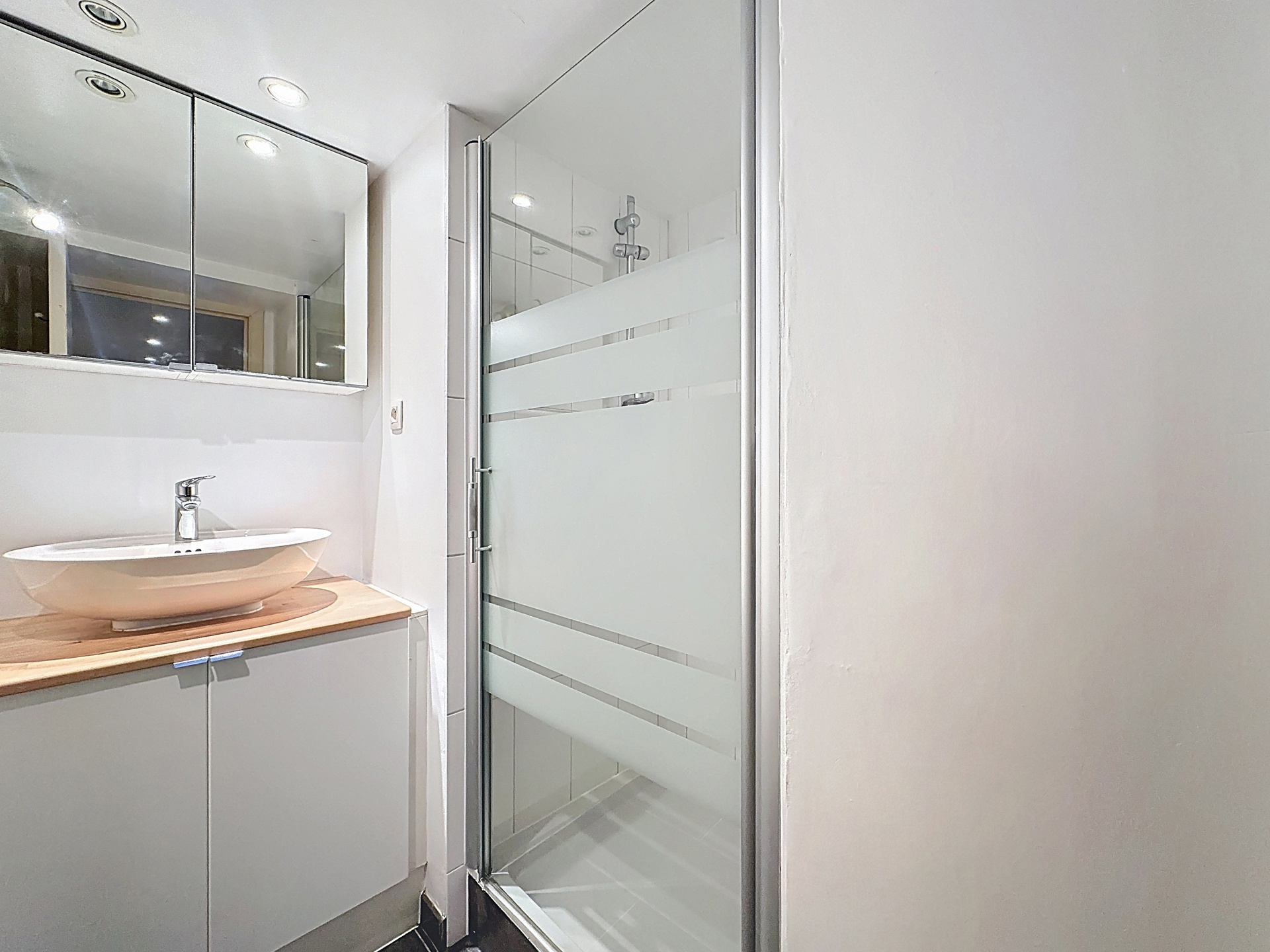 The property consists of a living area, a sleeping area, a kitchen, a shower room, and a separate toilet. It also benefits from a pleasant 27 m² outdoor space, a real asset in the city.