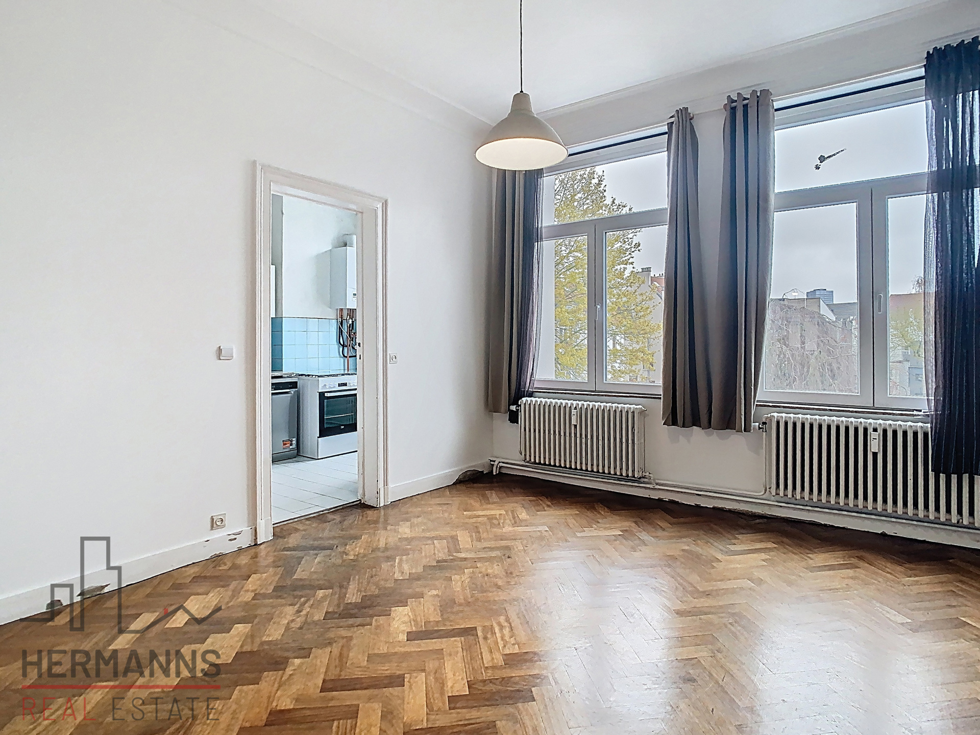 Located in a sought-after area, this ±81 m² through-apartment impresses with its abundant natural light and well-optimized spaces.