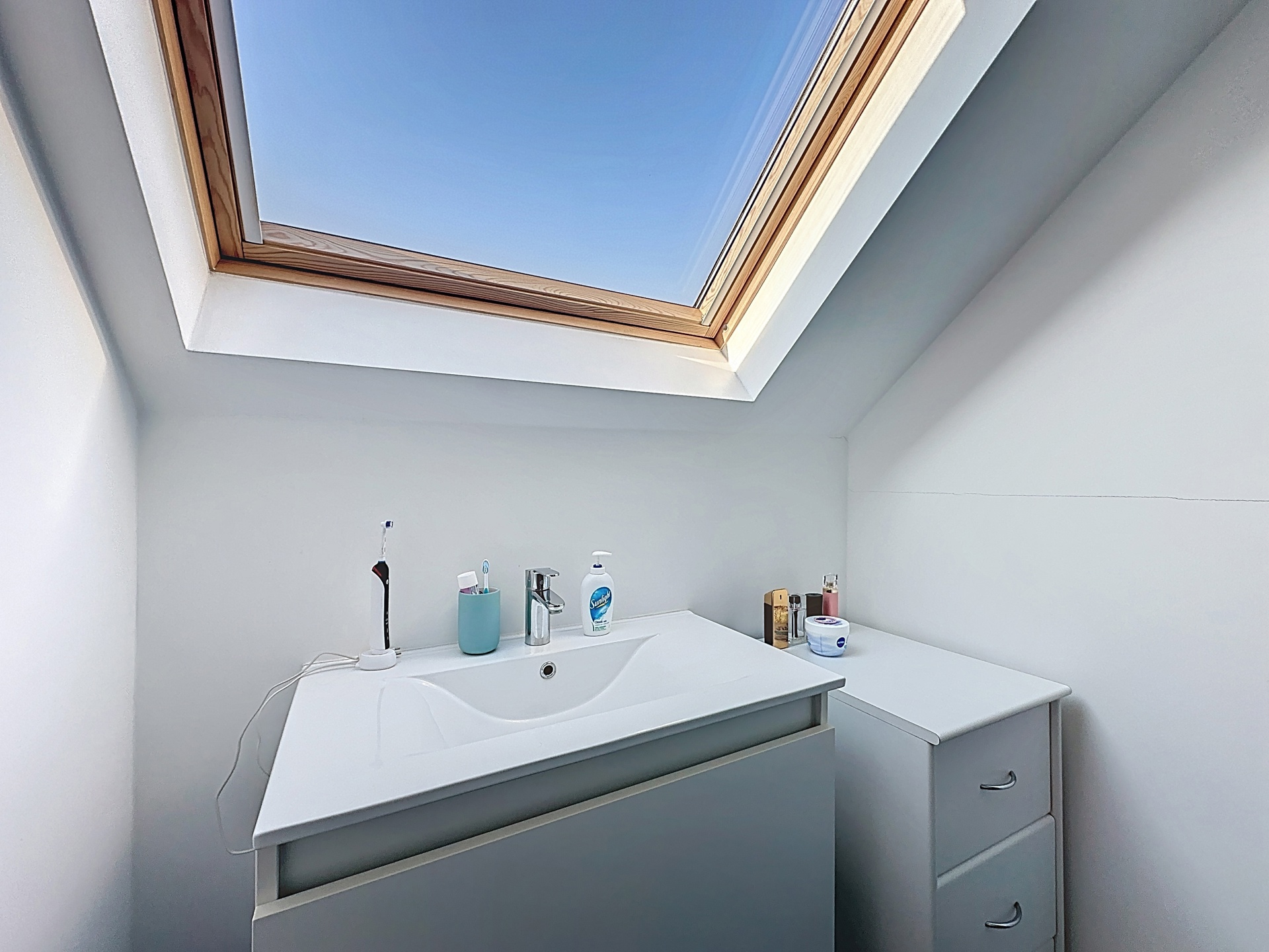 The property offers a bright living area, a fully equipped kitchen, a mezzanine bedroom, and a modern shower room. A healthy, well-ventilated cellar completes the property.