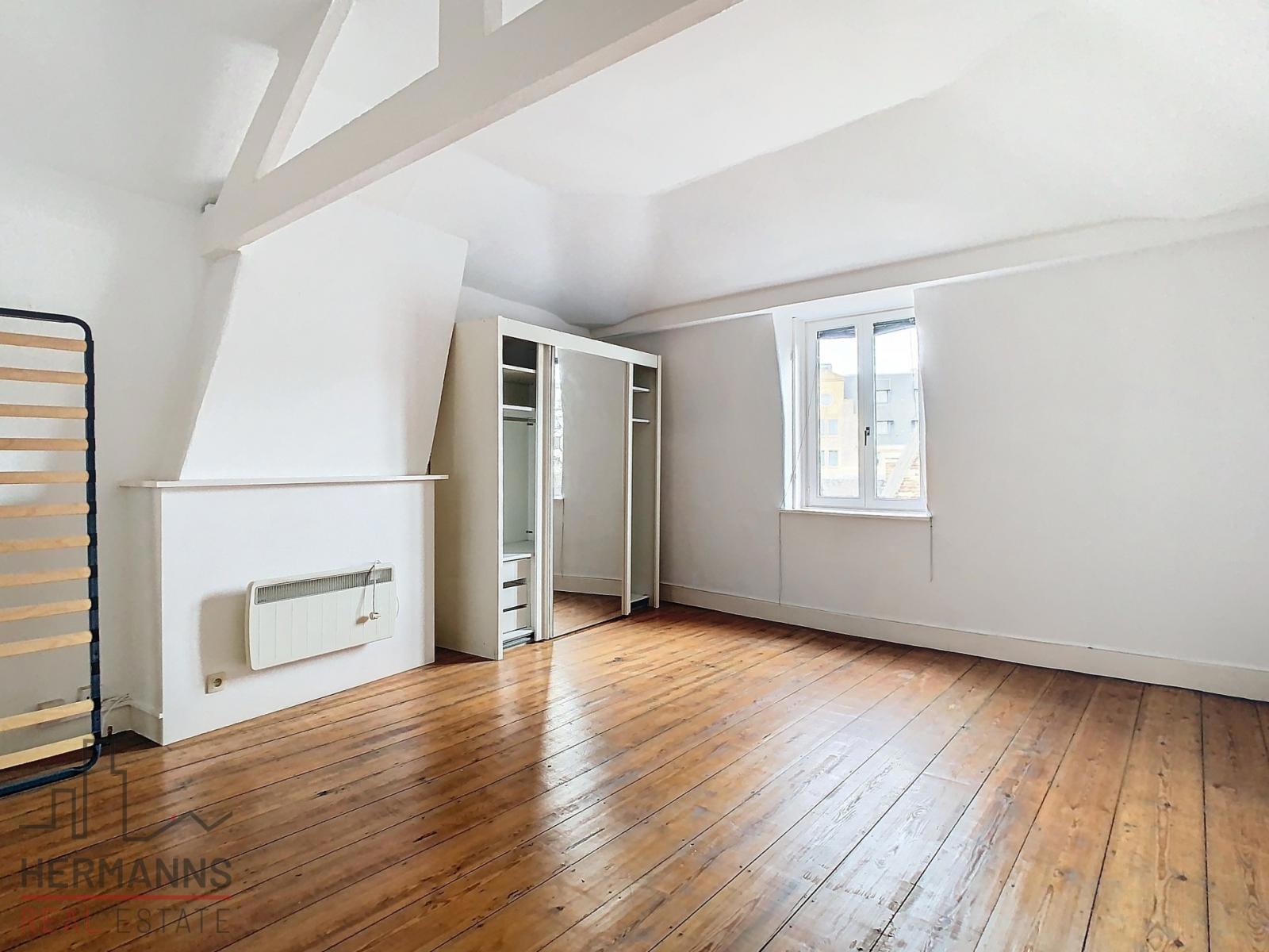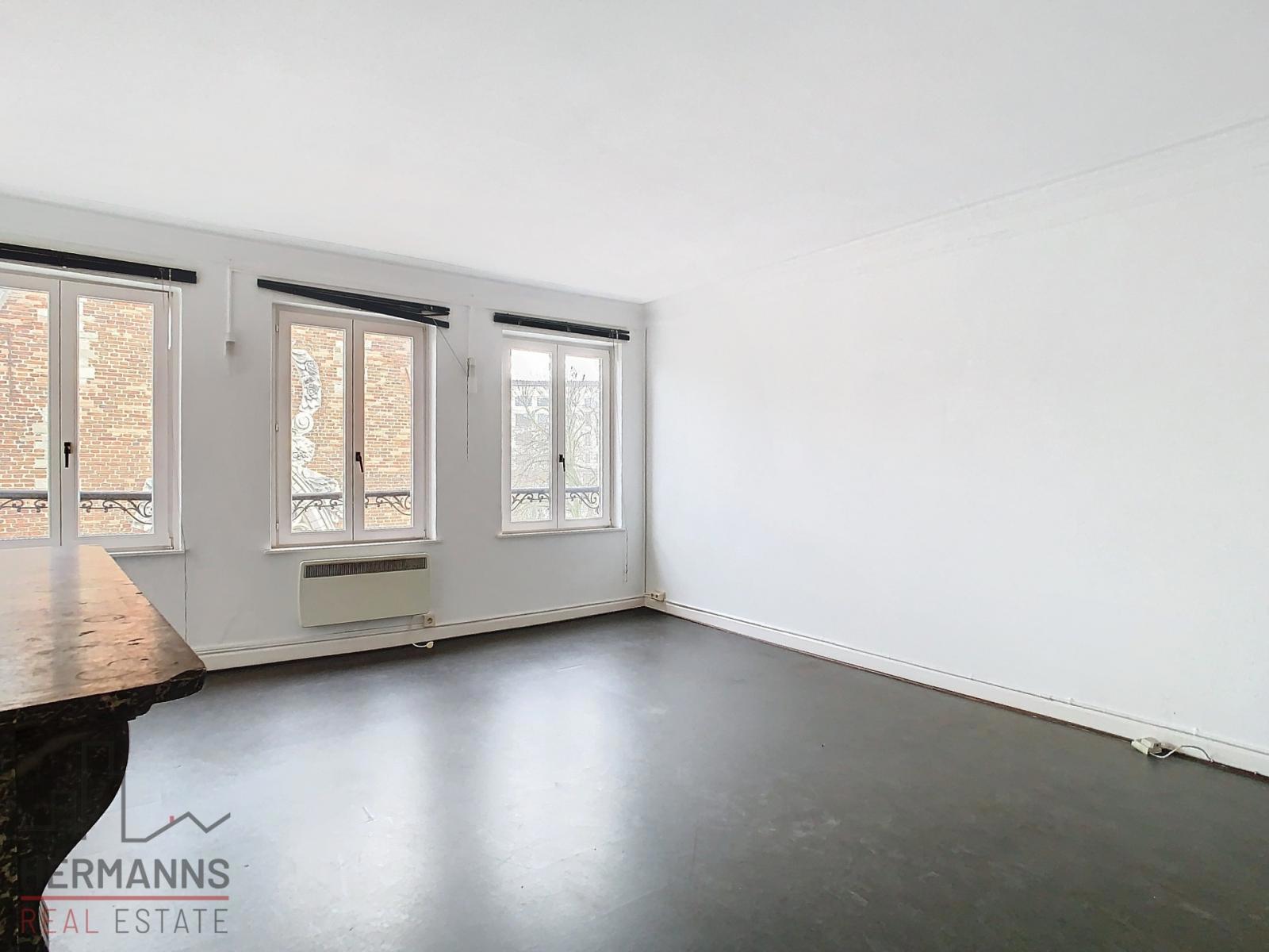 Gelegen in de onmiddellijke nabijheid van de Grote Markt en het Centraal Station, biedt dit ruime duplexappartement van ongeveer 100 m² mooie volumes en een functionele indeling.