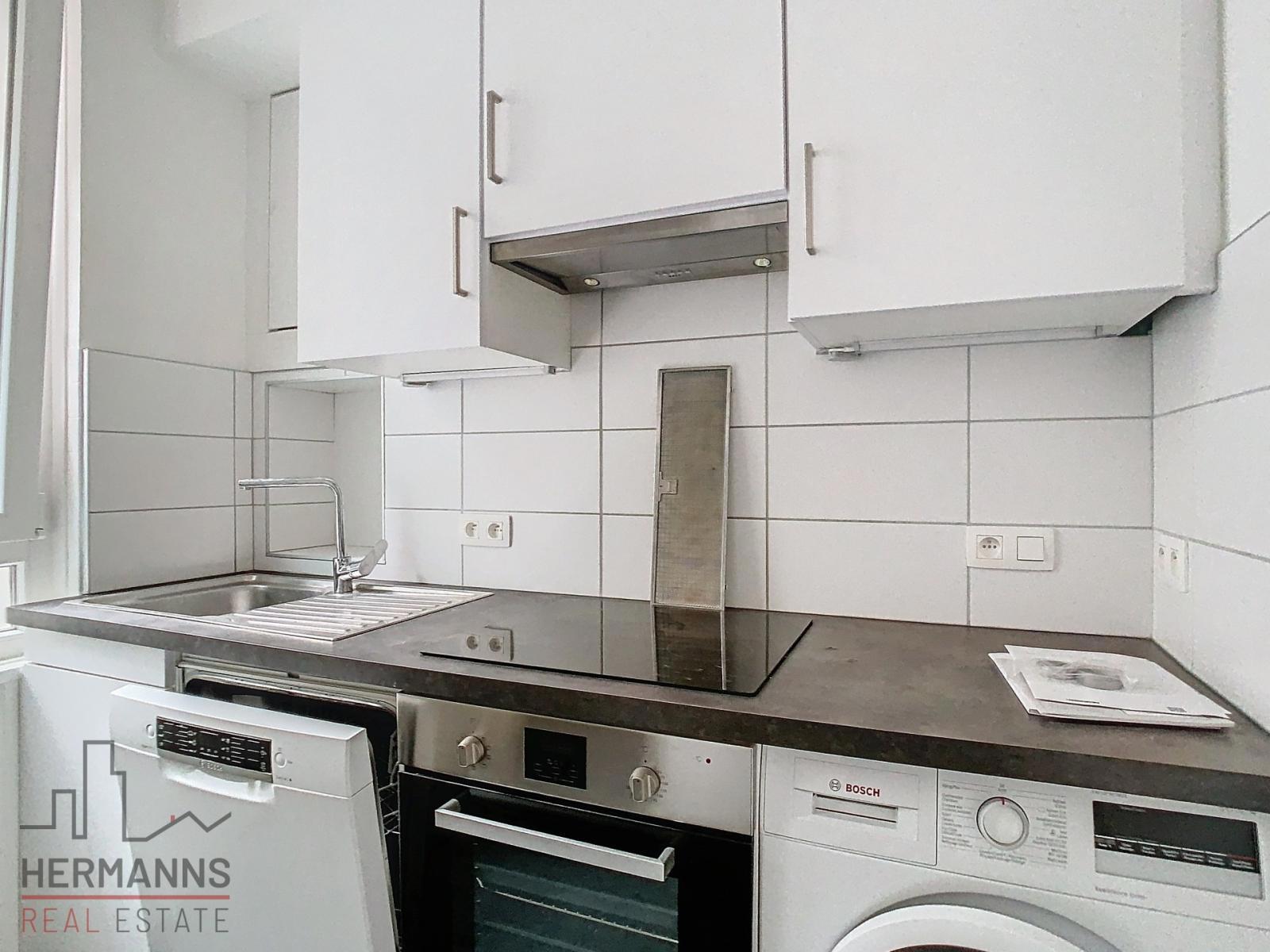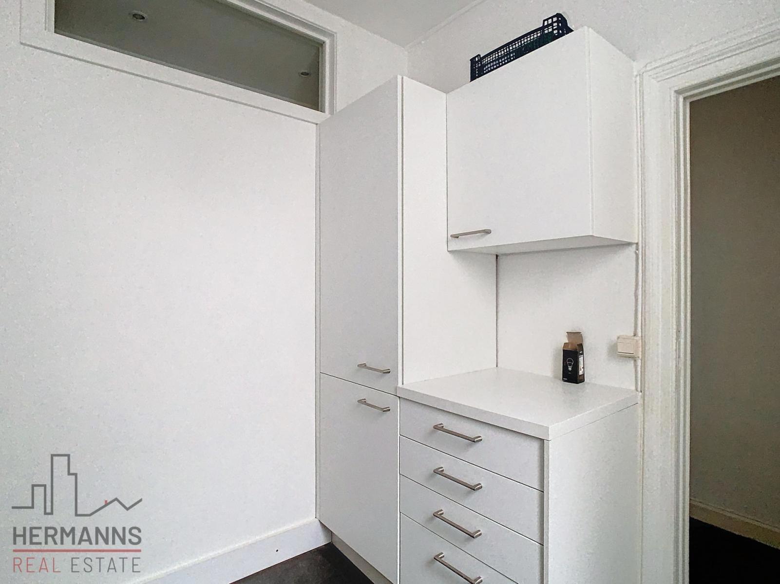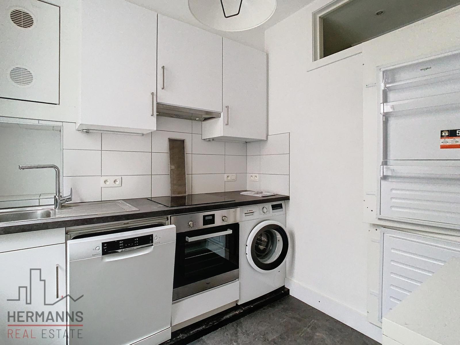 Het appartement bestaat uit een inkomhal, een ruime woonkamer, een volledig uitgeruste keuken (elektrische kookplaat, vaatwasser, dampkap, koelkast met vriezer en wasmachine) en een douchekamer.