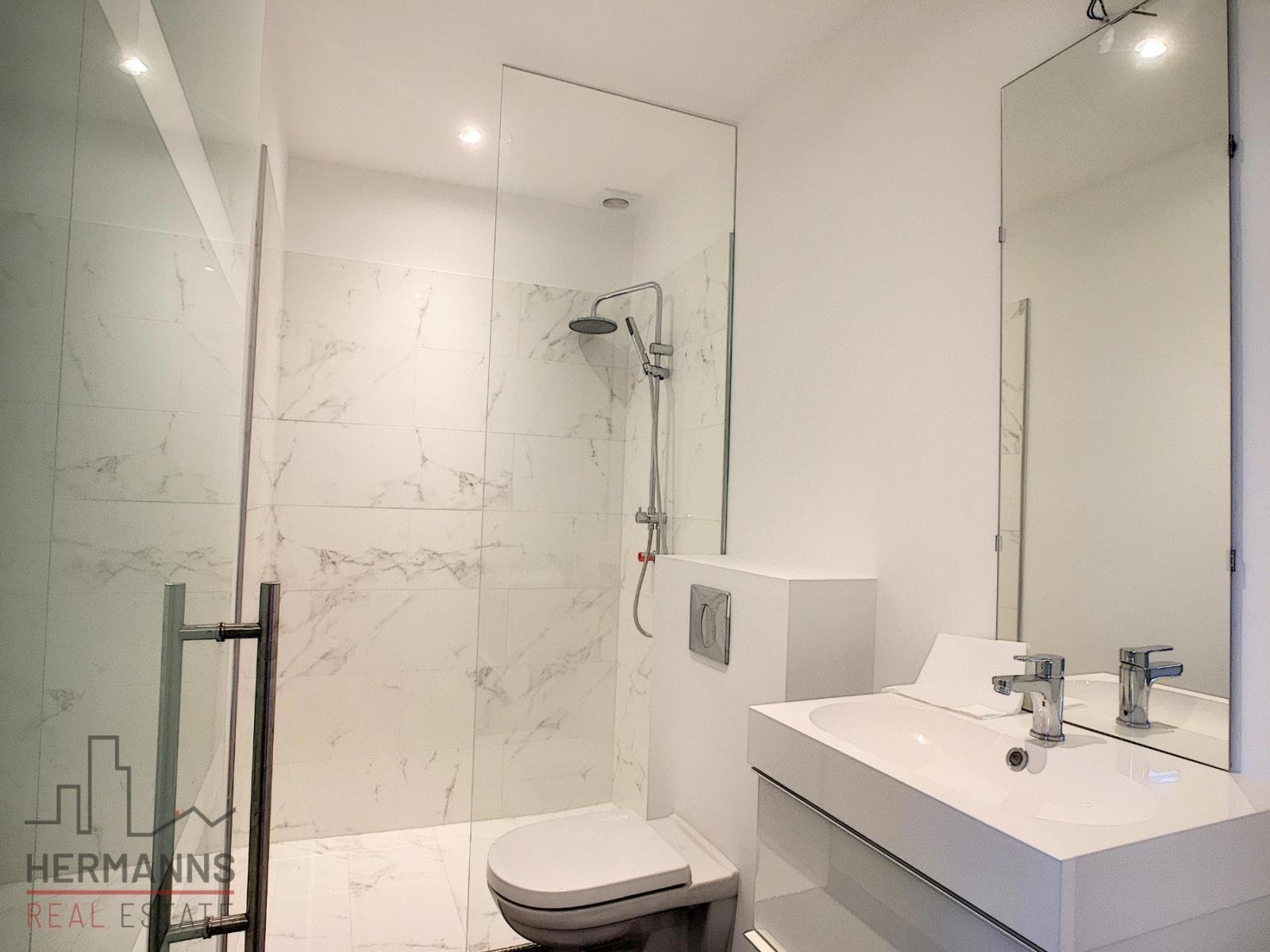 Lichte woonkamer met directe toegang tot het terras op het zuiden – volledig uitgeruste open keuken – drie slaapkamers, elk met eigen doucheruimte – gastentoilet – wasruimte – kelder – ondergrondse parkeerplaats.